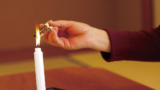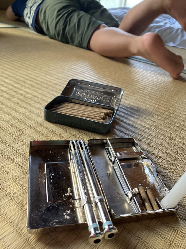 テルミー線と呼ばれる数種類の植物成分からできた線香に火をつけ、